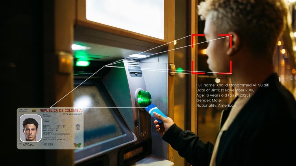 Real-time face verification with KYC, KYB, and AML database matching at the ATM.